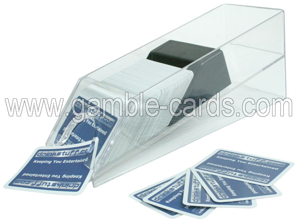 Les chaussures de transaction de blackjack sont utilisés pour tenir les cartes reçues par le joueur et le croupier. Les chaussures de blackjack sont fabriqués avec un matériau acrylique de haute qualité d'épaisseur. Le Blackjack 6 Pont Traiter Casino de chaussures est de qualité. Il dispose d'un rouleau en acier lourd avec action de roulement lisse. Il est construit en acrylique épais avec des bords arrondis et lisses. Cette chaussure de blackjack est construit pour durer.