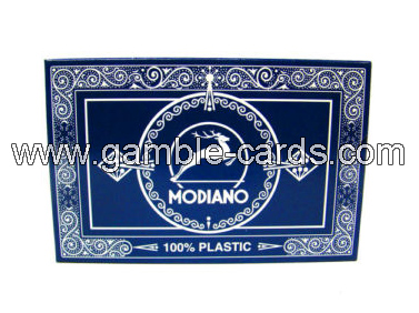 Modiano ponts avec des marqueurs luminescents sont spécialement conçus pour une performance impressionnante! Modiano cartes sont 100% des cartes à jouer en plastique souvent durer jusqu'à 50-100 fois plus que le papier sur la base ou recouverts de plastique cartes à jouer. 100% des cartes en plastique sont lavables à sertir et à la décoloration, étanche et extrêmement durable.